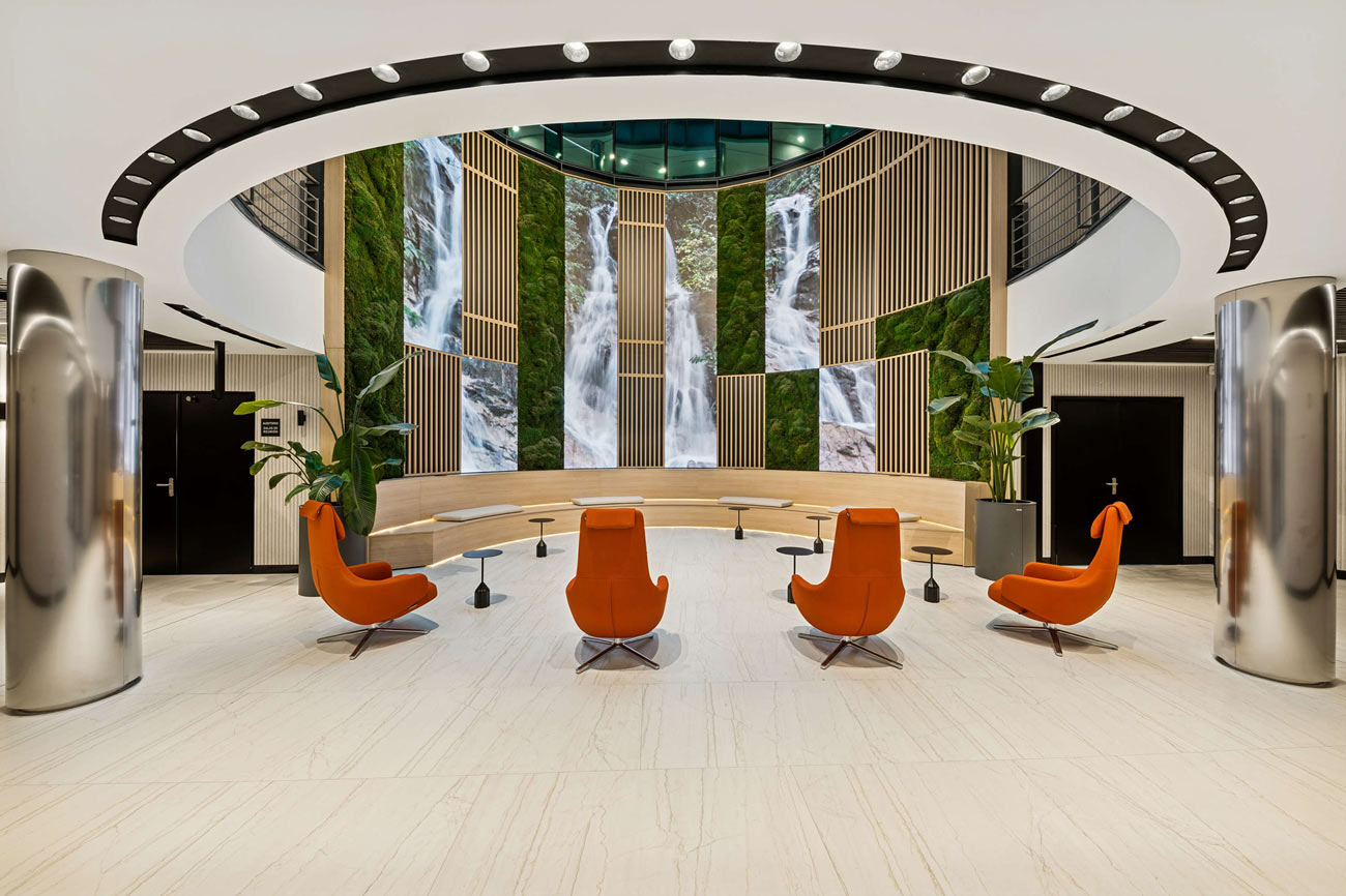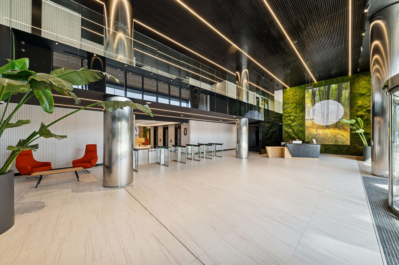 El magnífico lobby del edificio representa un espacio exclusivo de gran amplitud,